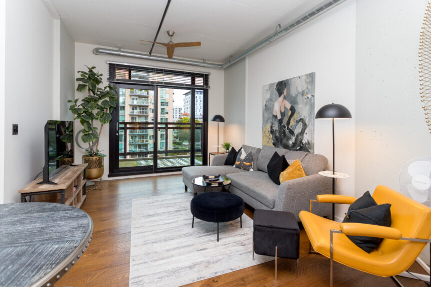 Gorgeous & Unique Loft Style Living in The Juke Box! Light filled corner unit with floor to ceiling windows, over 400 sq. ft of balconies,10’high ceilings, European Vinyl Plank flooring throughout, high gloss kitchen w/quartz counters, built in appliances and island, decadent bathroom with ceiling rain shower head, washer and dryer and custom freestanding armoires. Live the downtown lifestyle in …