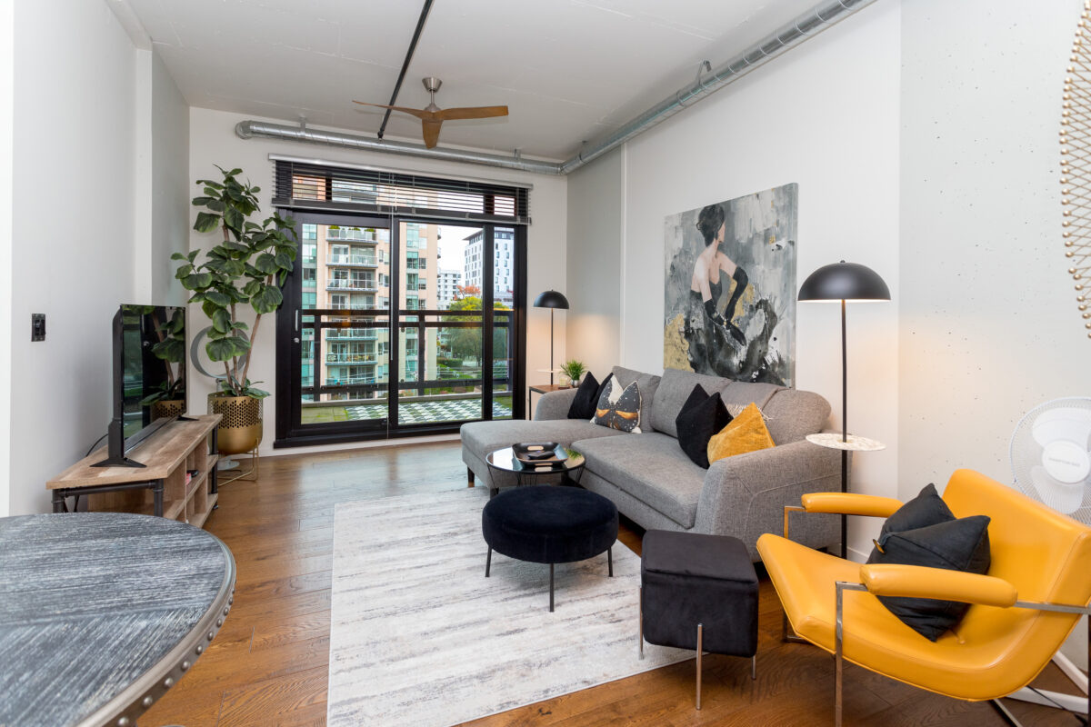 Gorgeous & Unique Loft Style Living in The Juke Box! Light filled corner unit with floor to ceiling windows, over 400 sq. ft of balconies,10’high ceilings, European Vinyl Plank flooring throughout, high gloss kitchen w/quartz counters, built in appliances and island, decadent bathroom with ceiling rain shower head, washer and dryer and custom freestanding armoires. Live the downtown lifestyle in Harris Green-across the street from Yates Market with its numerous market stores, 1/2 block to Cook St., yet only 3 blocks from the heart of Victoria’s downtown where all the action is. FULLY FURNISHED and READY TO LIVE IN or a GREAT TURN KEY PROFESSIONALLY MANAGED REVENUE PROPERTY. Min 90 days rental. Pets welcome. U/G parking and storage/bike lockers included. Huge Fitness centre with outdoor patio and water feature. Call now to book a viewing!